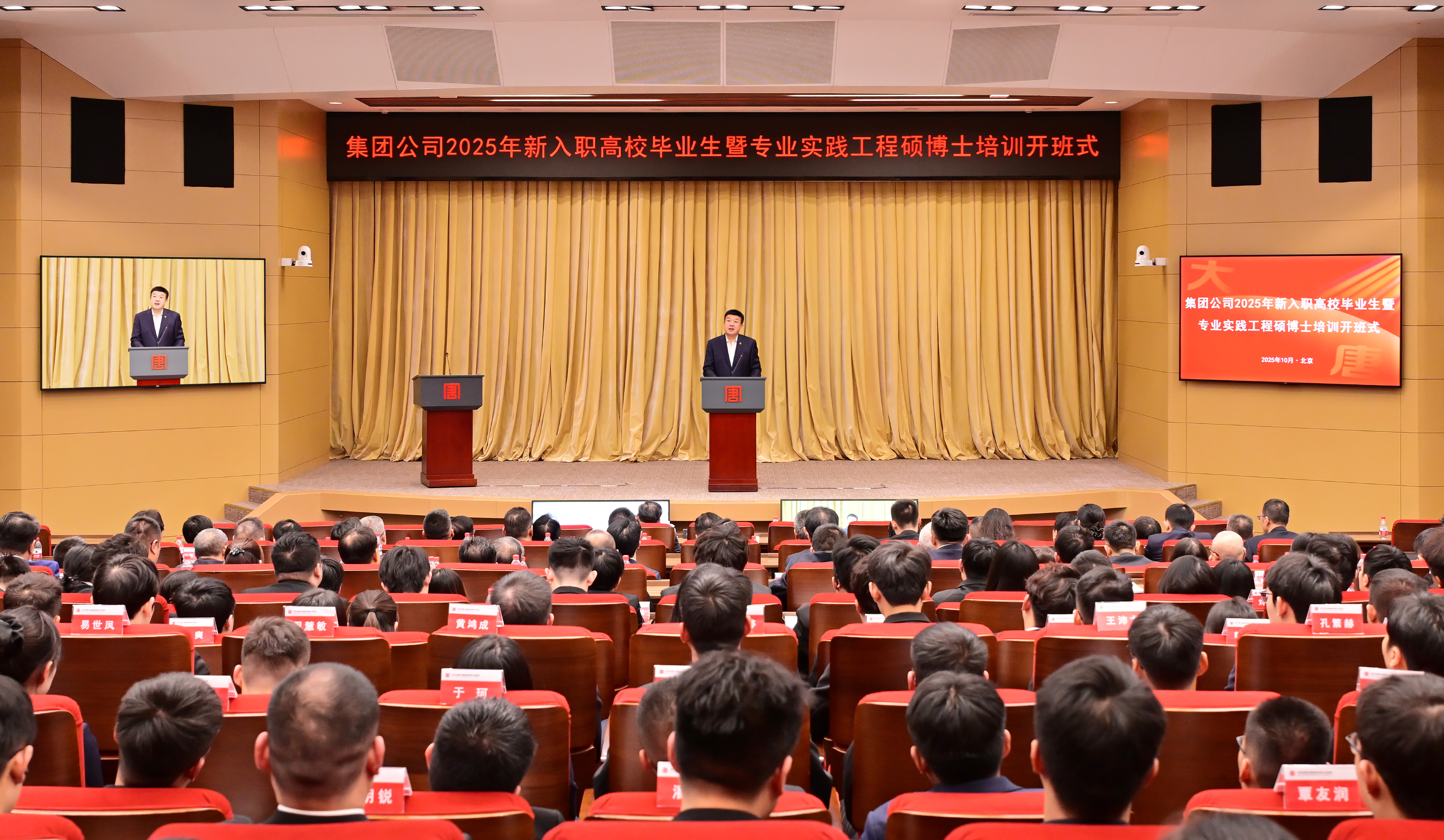 開班式以“現場+視頻”形式召開。集團公司有關部門及黨校主要負責人、在京單位主要負責人、相關二級單位人力資源部負責人、系統各單位2025年新入職高校畢業生代表和2025年新入企專業實踐工程碩博士在主會場參加開班式。京外單位主要負責人、各單位分管領導、相關部門人員,2025年新入職高校畢業生在分會場參加開班式。