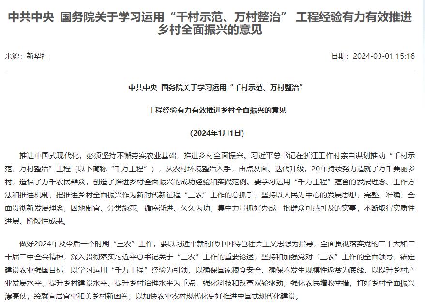 中共中央 國務院印發《鄉村全面振興規劃(2024—2027年)》...